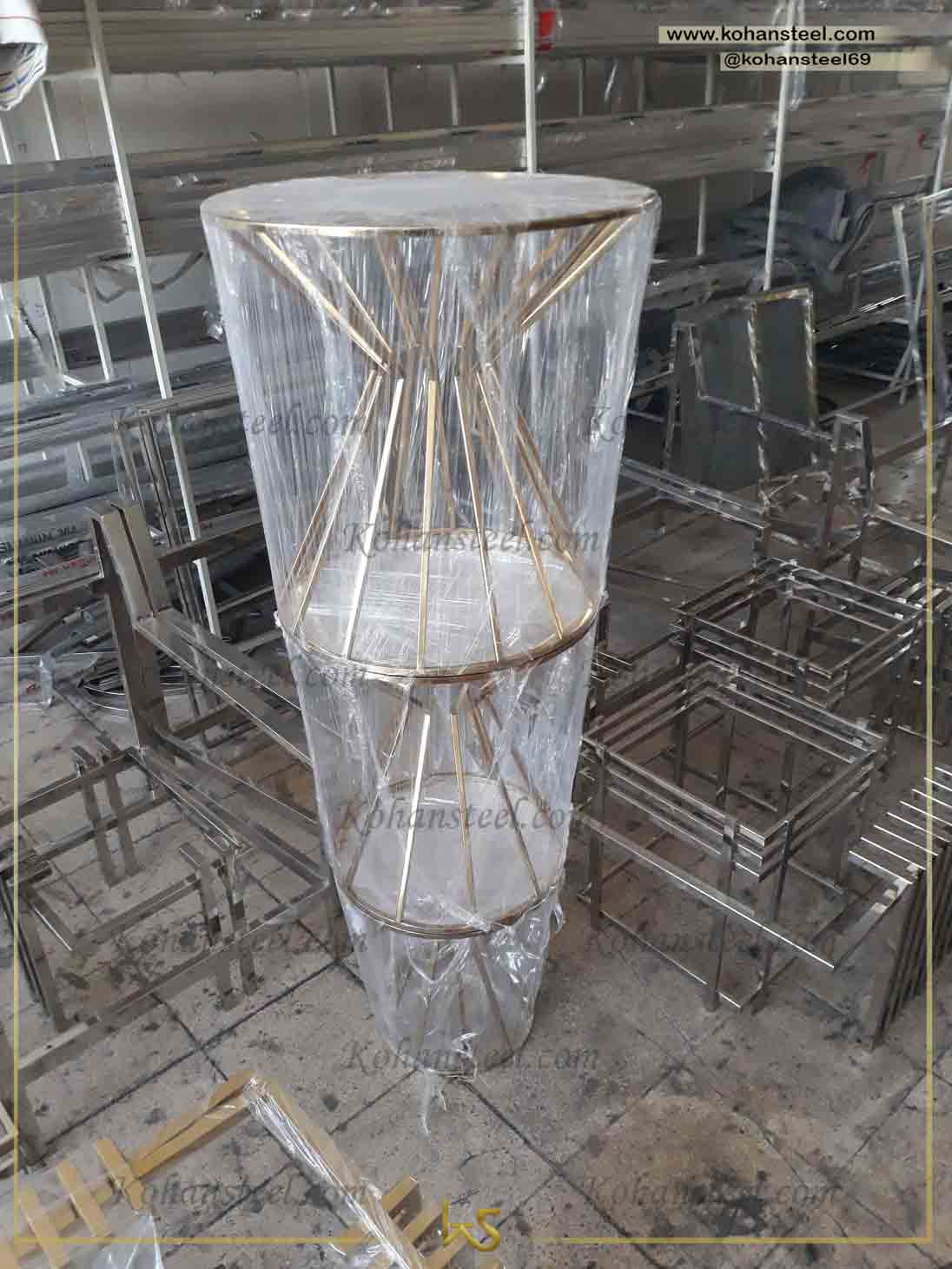 میزهای ساخت ما همگی قابل رنگ هستند.البته رنگ طلایی در میان سلیقه ها خوش اقبال تر بوده و هست. استیل بخاطر جنس خاص خود رنگ معمولی را نمیپذیرد و با دستگاه های خاص باید رنگ شود. یکی از بهترین این دستگاه ها پی وی دی است که در رنگ اجسام مختلف از جمله استیل از آن استفاده میشود. تکنولوژی این دستگاه رنگ تحت خلا میباشد.این میز عسلی استیل طلایی تولید ما نیز با همین دستگاه رنگ میشوند.