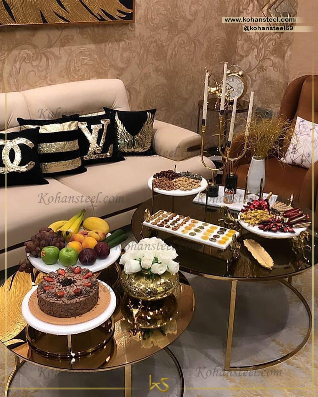 این ست جلو مبلی گرد طلایی از جنس استیل 304 وارداتی و ضد زنگ هست . اما قیمت تولید کننده با قیمت واسطه حتما فرق داره .