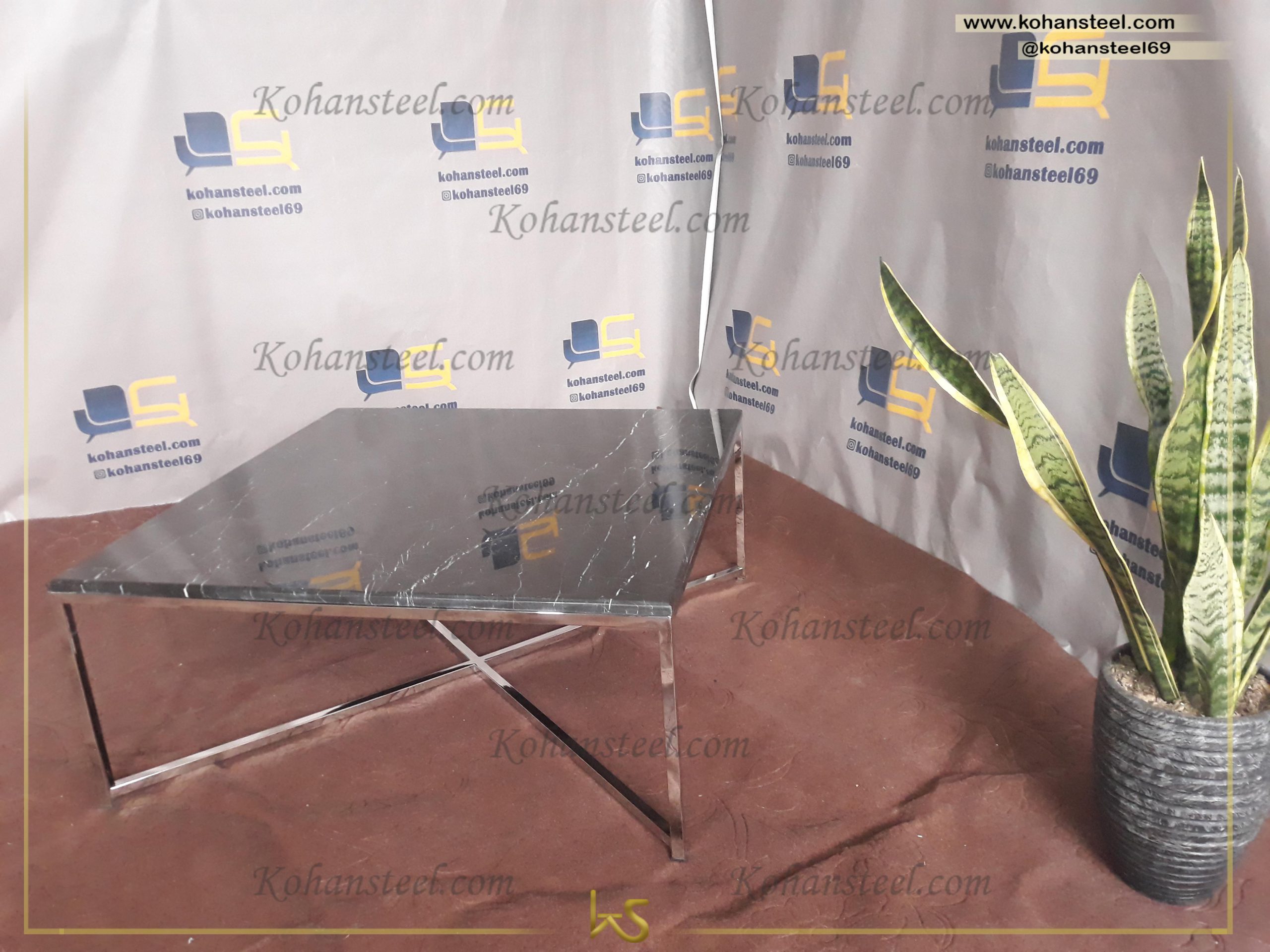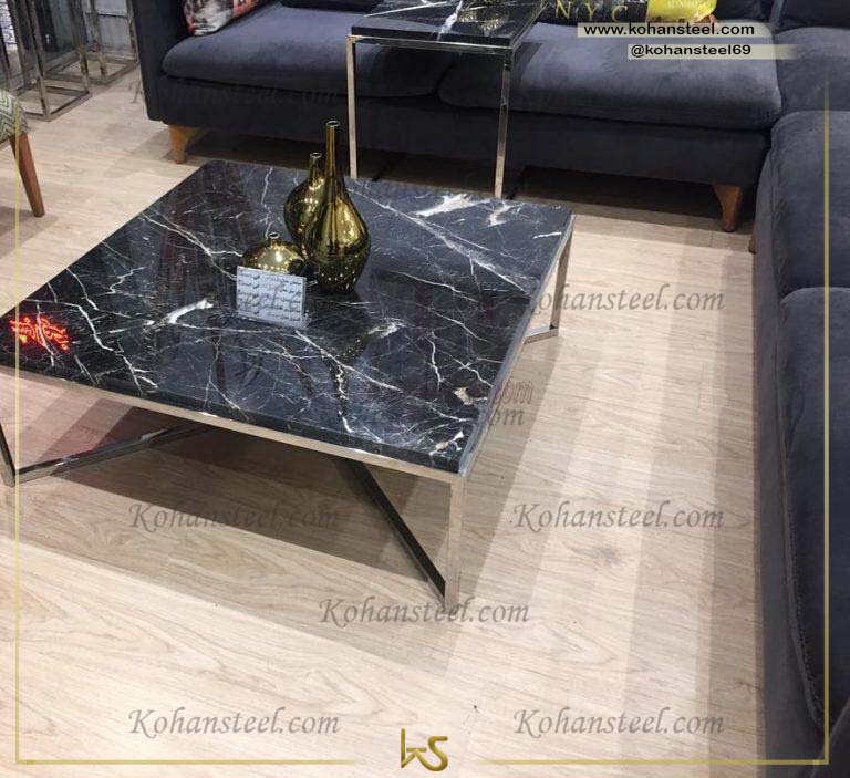 میز جلومبلی استیل با رویه سنگ یکی از طرح های مورد استقبال مشتریان است.این میز های وسط با انواع سنگ نجف آباد مشکی رگه سفید , سنگ سفید ازنا , سنگ تری دی بلک و سنگ گلدن بلک تهیه می شود.به خاطر سنگینی رویه سنگ می توان از ام دی اف طرح سنگ نیز برای رویه میز جلو مبلی استفاده کرد که در دو رنگ سفید طرح سنگ و مشکی طرح سنگ تهیه می شود.